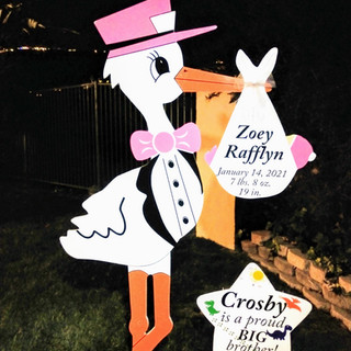 Call us at 619-972-3724 to rent a stork sign for your new baby or grandchild. Please visit our FACEBOOK page to see our most current rentals.